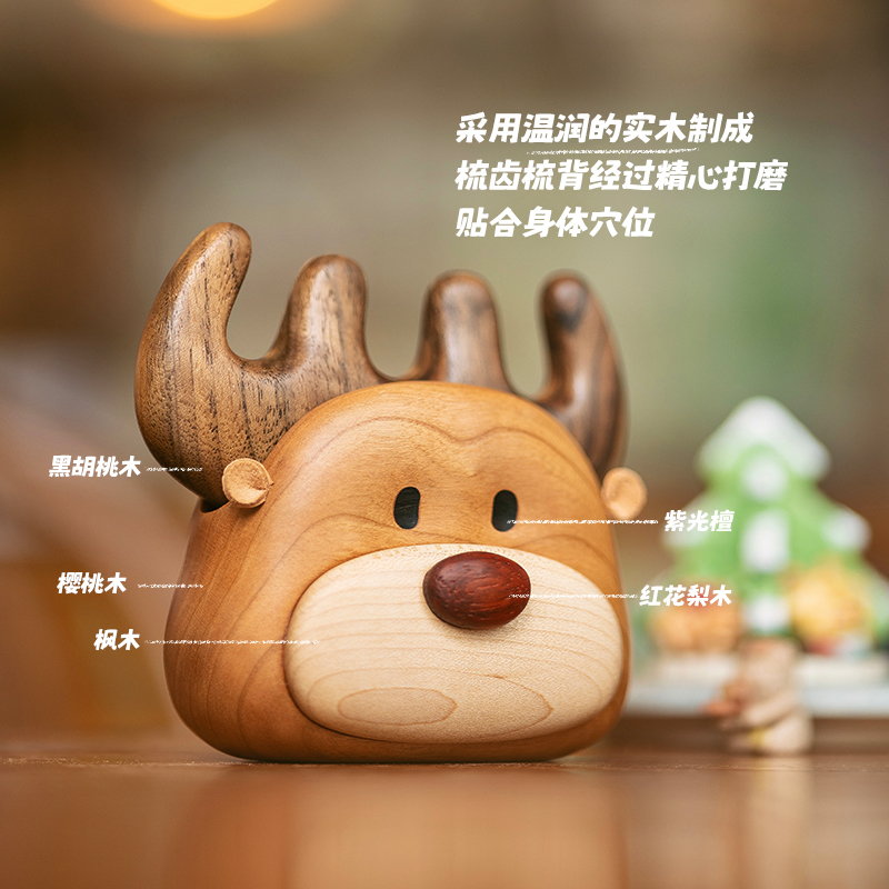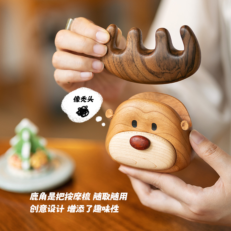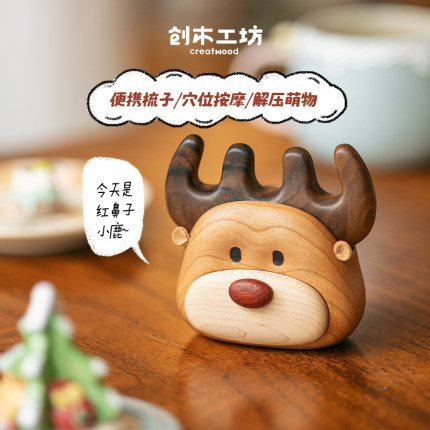 麋鹿按摩梳/创木工坊实木小鹿头部经络护理养生木梳子送女生礼物