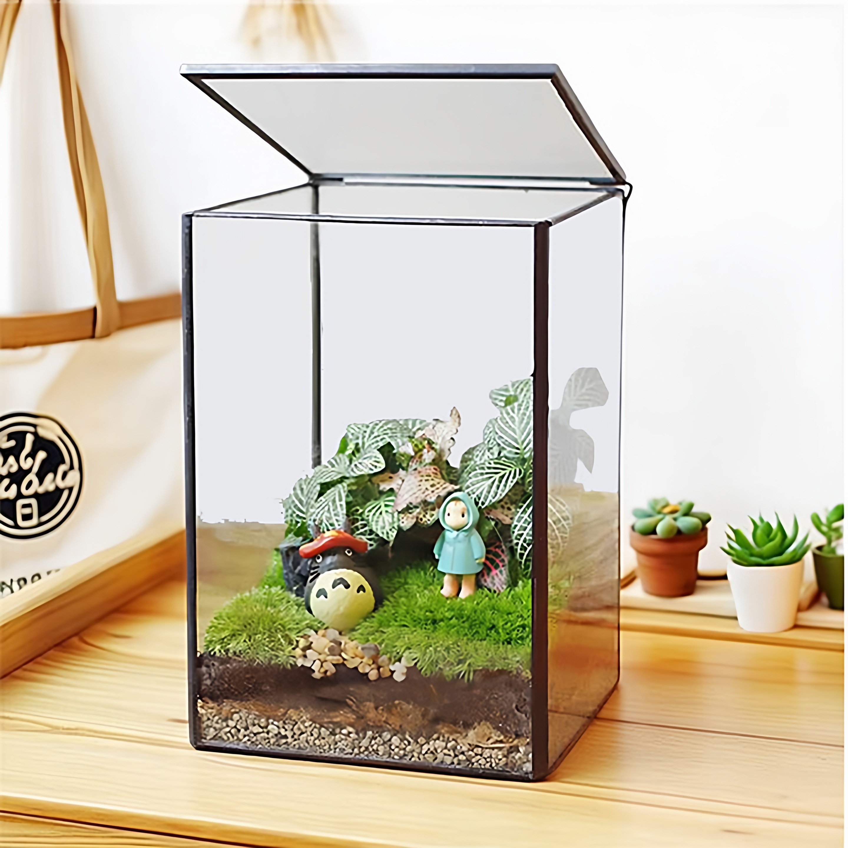 北欧玻璃罩花房微景观多肉植物花瓶器皿家居化妆品翻盖收纳盒摆件