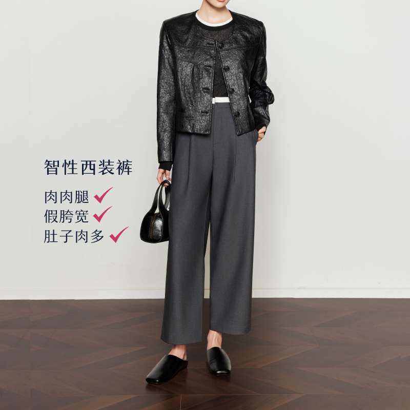 【城市之光】CHICJOJO灰色西装九分裤25秋新款高腰通勤休闲裤女