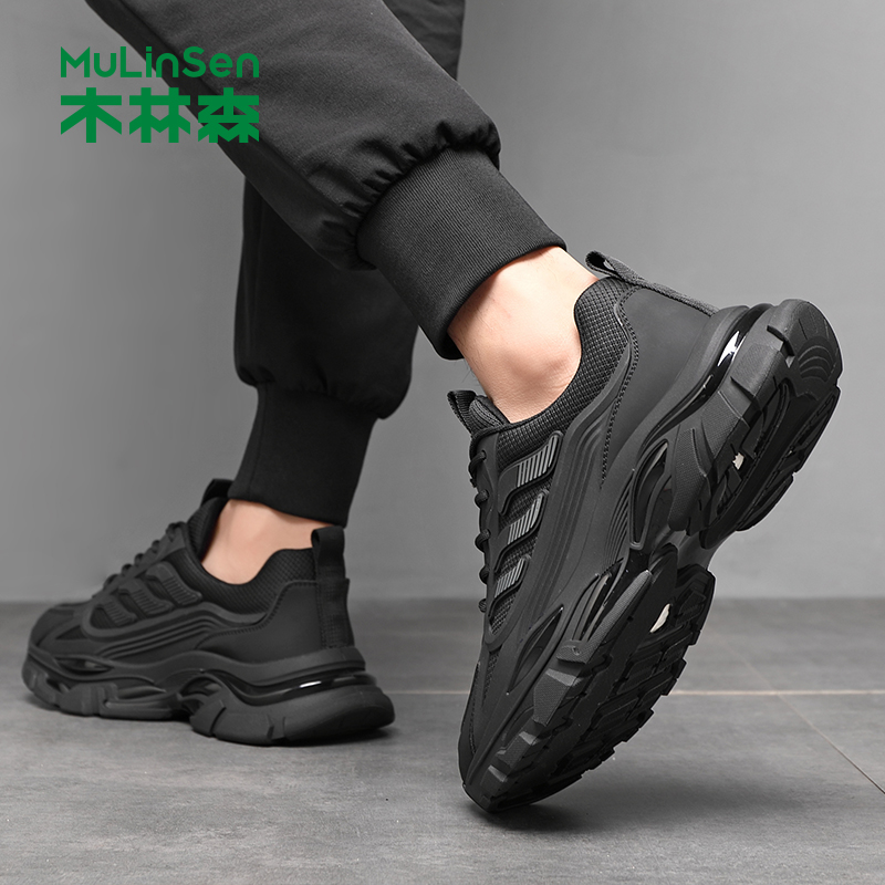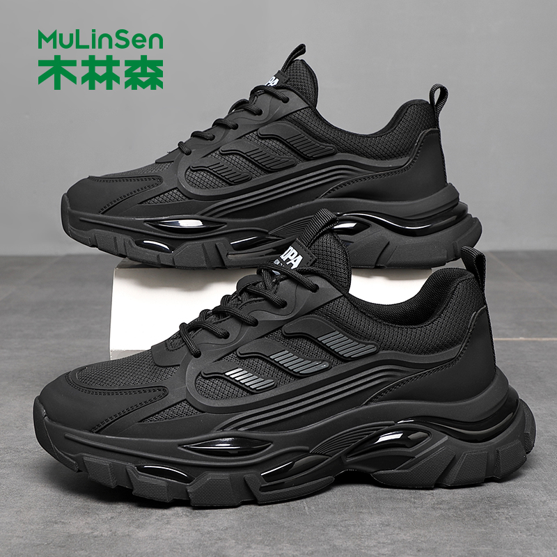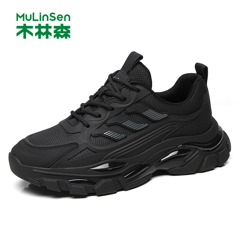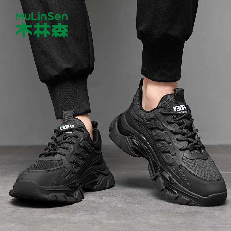 木林森男鞋2025冬季透气厚底潮流网面鞋男款爆米花软底运动休闲鞋