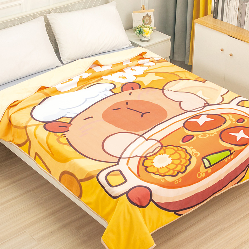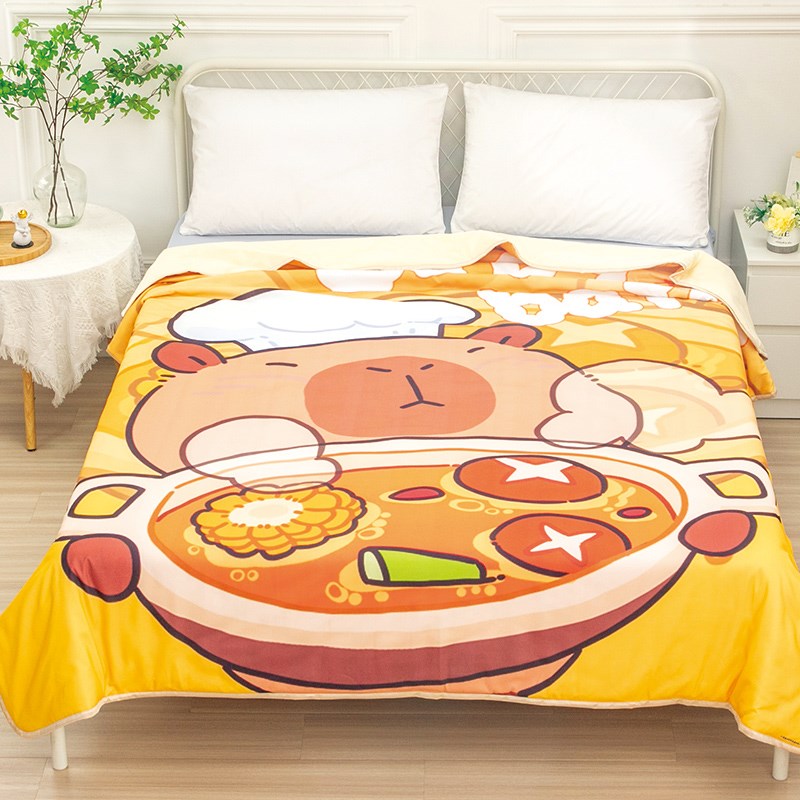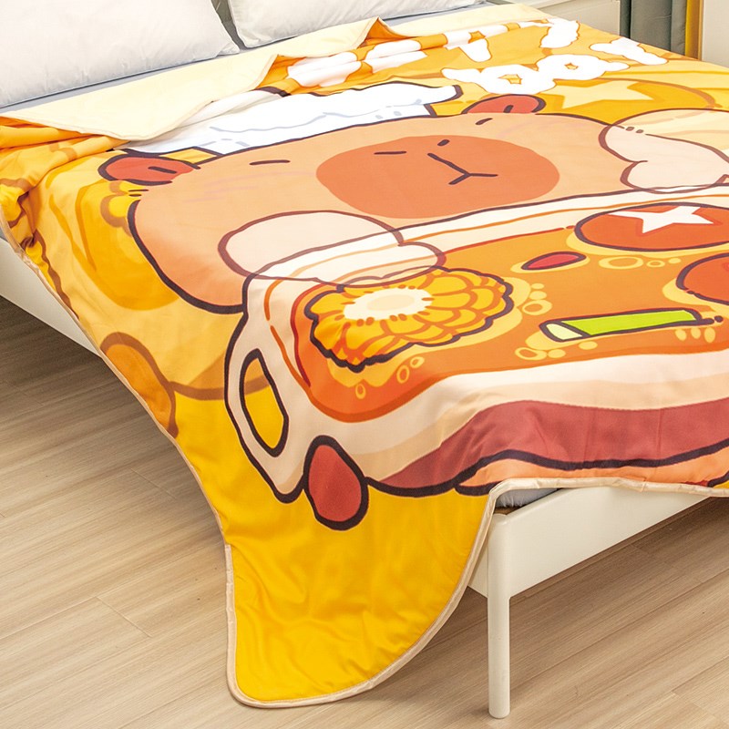 卡通水豚卡皮巴拉空调被儿童学生春秋款可机洗小被子单人夏凉被