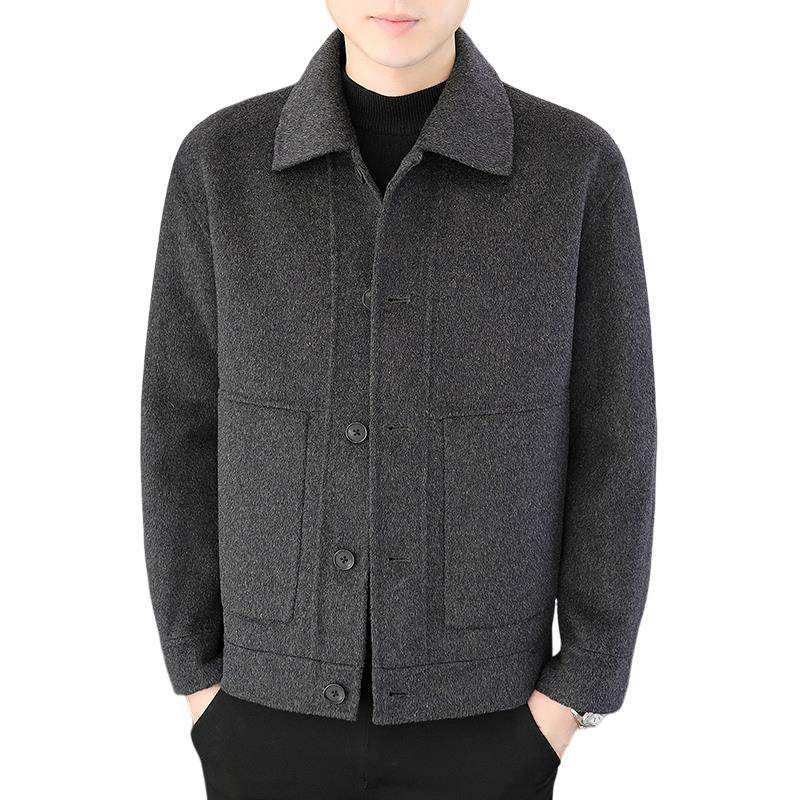 高端双面羊绒呢子大衣男秋冬韩版潮流翻领短款夹克男士羊毛呢外套