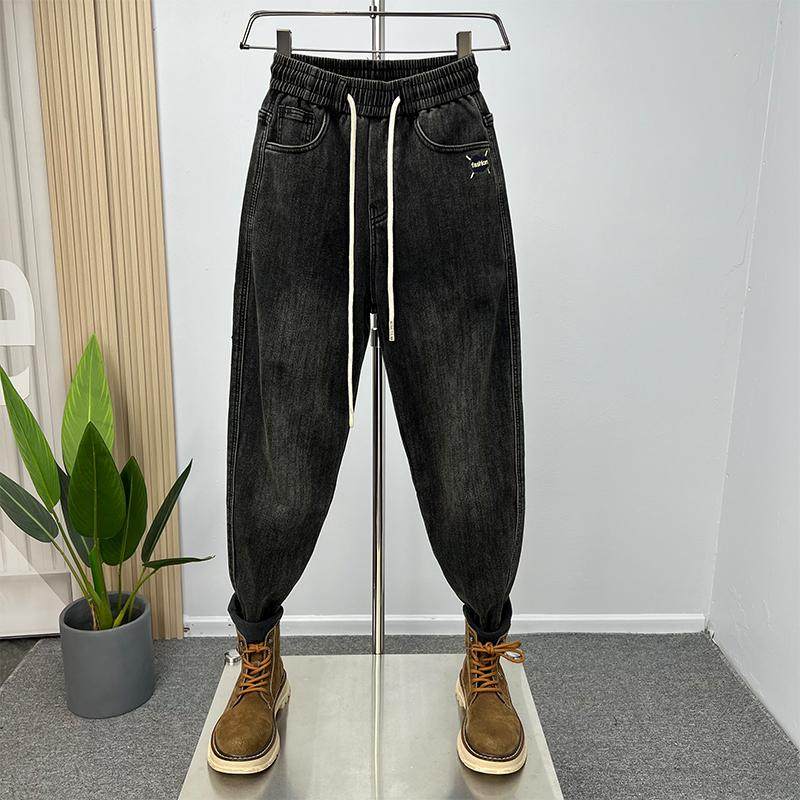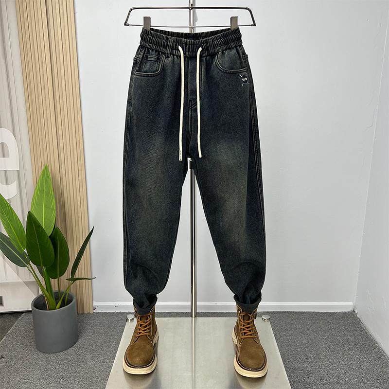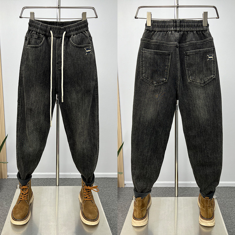 加绒加厚保暖牛仔裤男潮流休闲弹力个性哈伦萝卜裤青年百搭小脚裤
