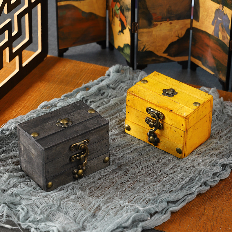 中式复古迷你小木盒带锁古风首饰盒桌面装饰收纳盒藏宝箱拍照道具