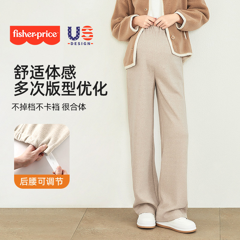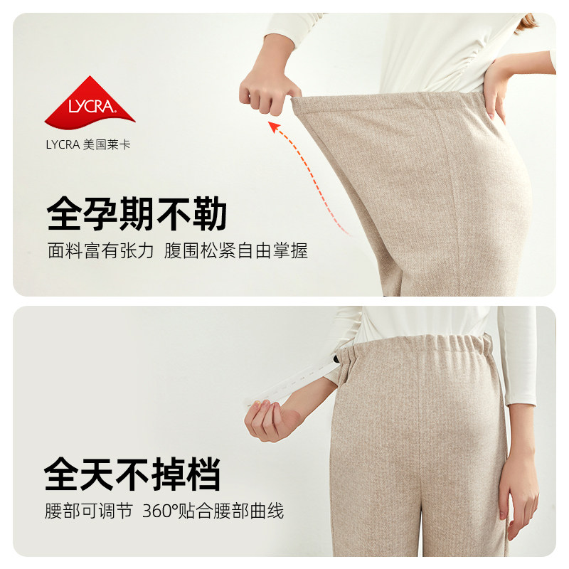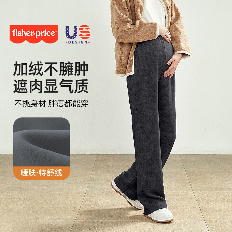 费雪孕妇裤2025秋冬新款外穿加绒宽松大码糯米裤无托腹羊毛阔腿裤