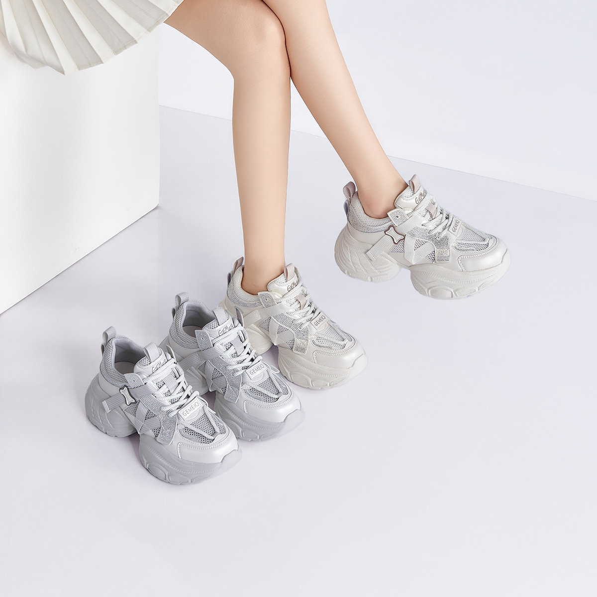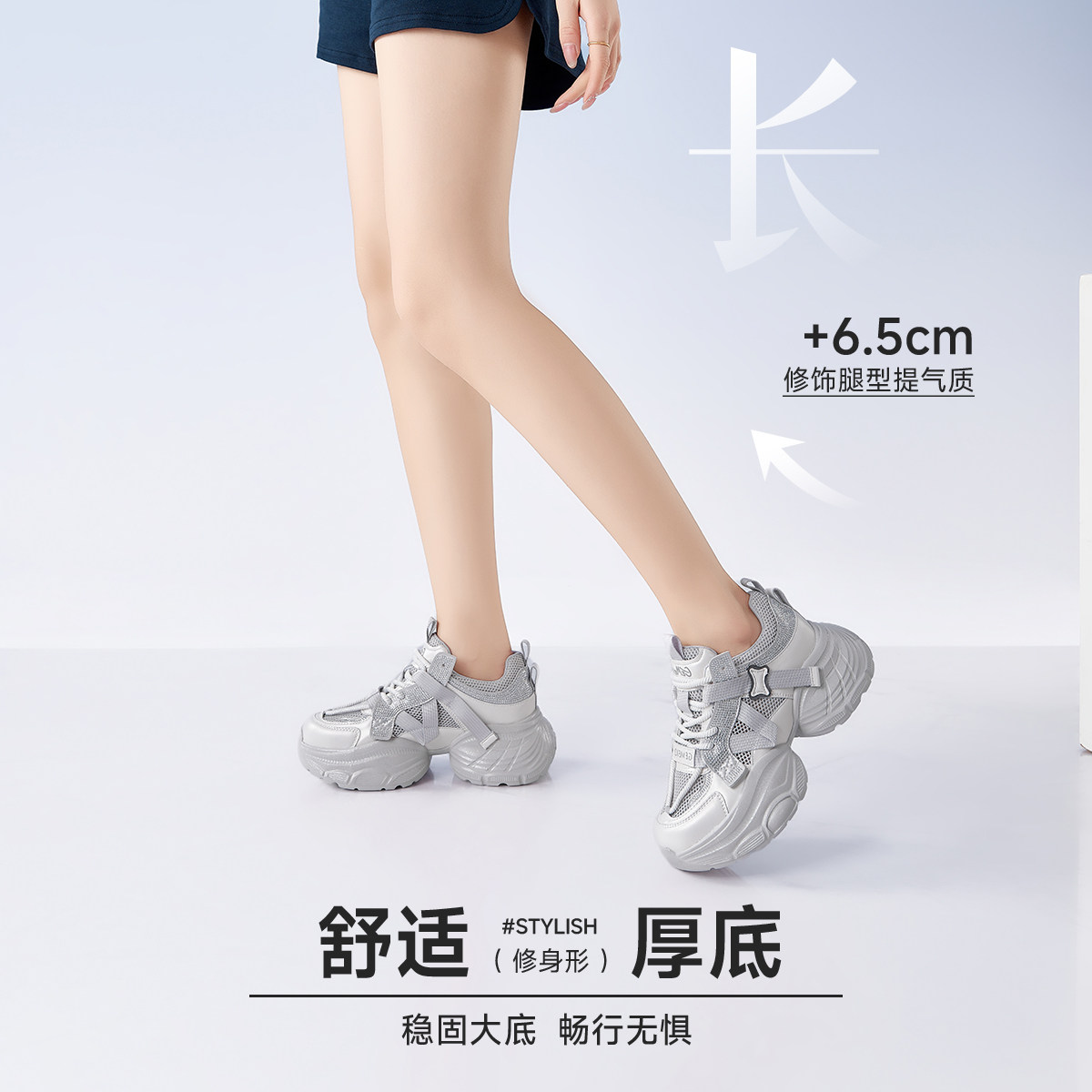 戈美其商场同款单网老爹鞋女款时尚女夏新款女鞋跑步鞋网面厚底鞋