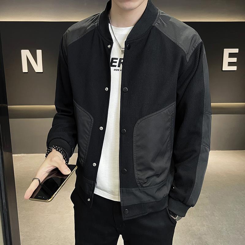 秋冬季棒球服外套加加厚梭织针织拼接男装2025年新款美式条1005n