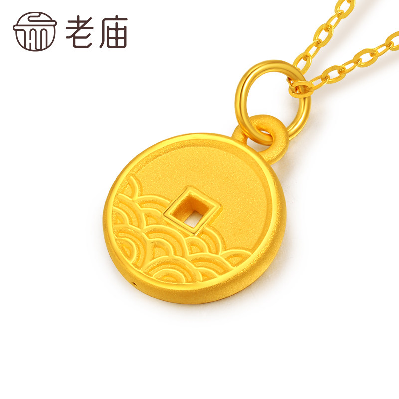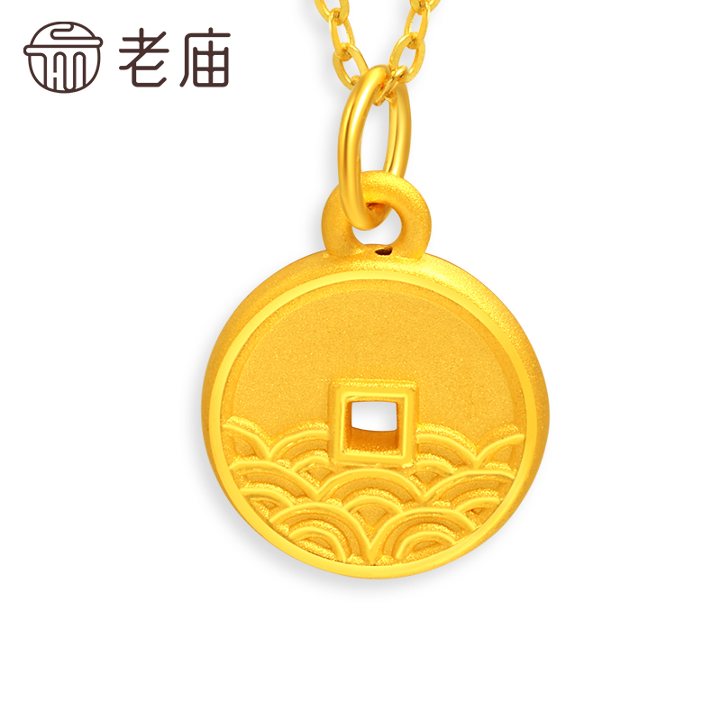 老庙黄金足金3D硬金潮水铜钱环挂坠金币吊坠金钱纹财源滚滚送礼
