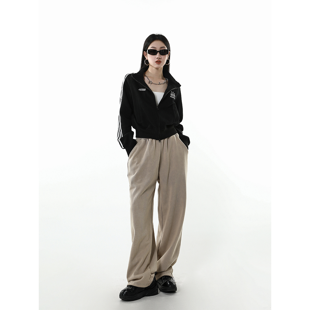 ICH MODE 美式修身短款黑色外套女2025新款秋冬运动连帽卫衣开衫