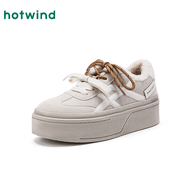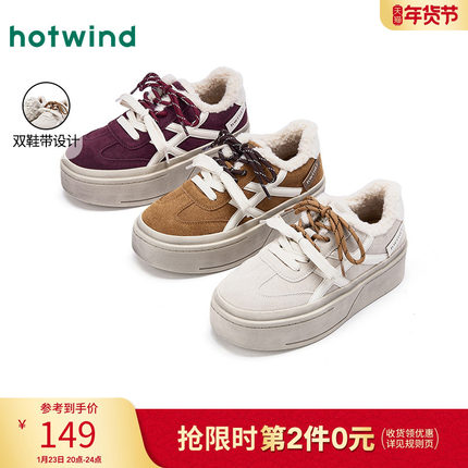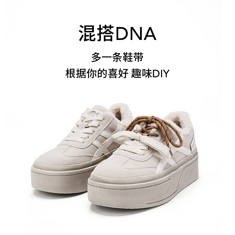 热风厚底德训鞋女2025年冬季新款加绒保暖休闲鞋百搭运动女板鞋子