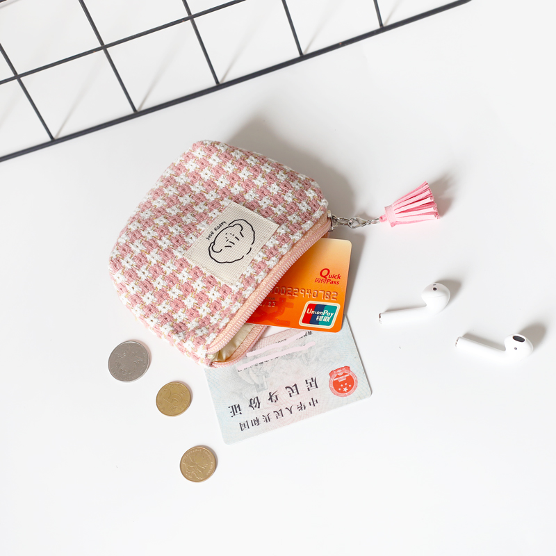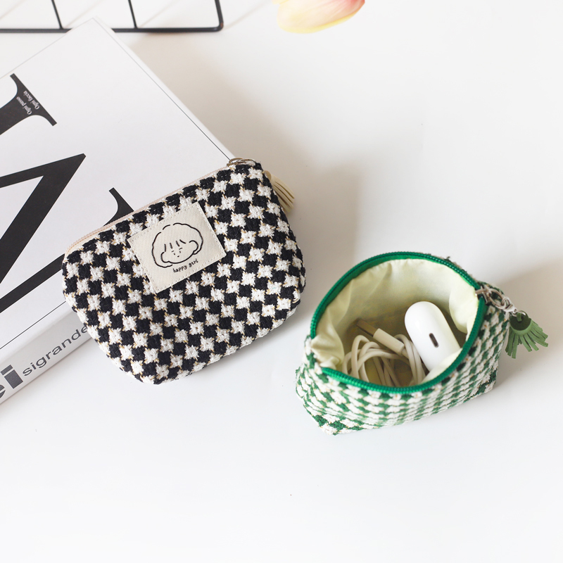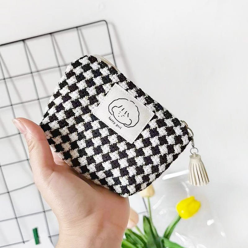 冬天新款格子零钱包女小巧便携韩版学生可爱收纳包黑白格mini包包