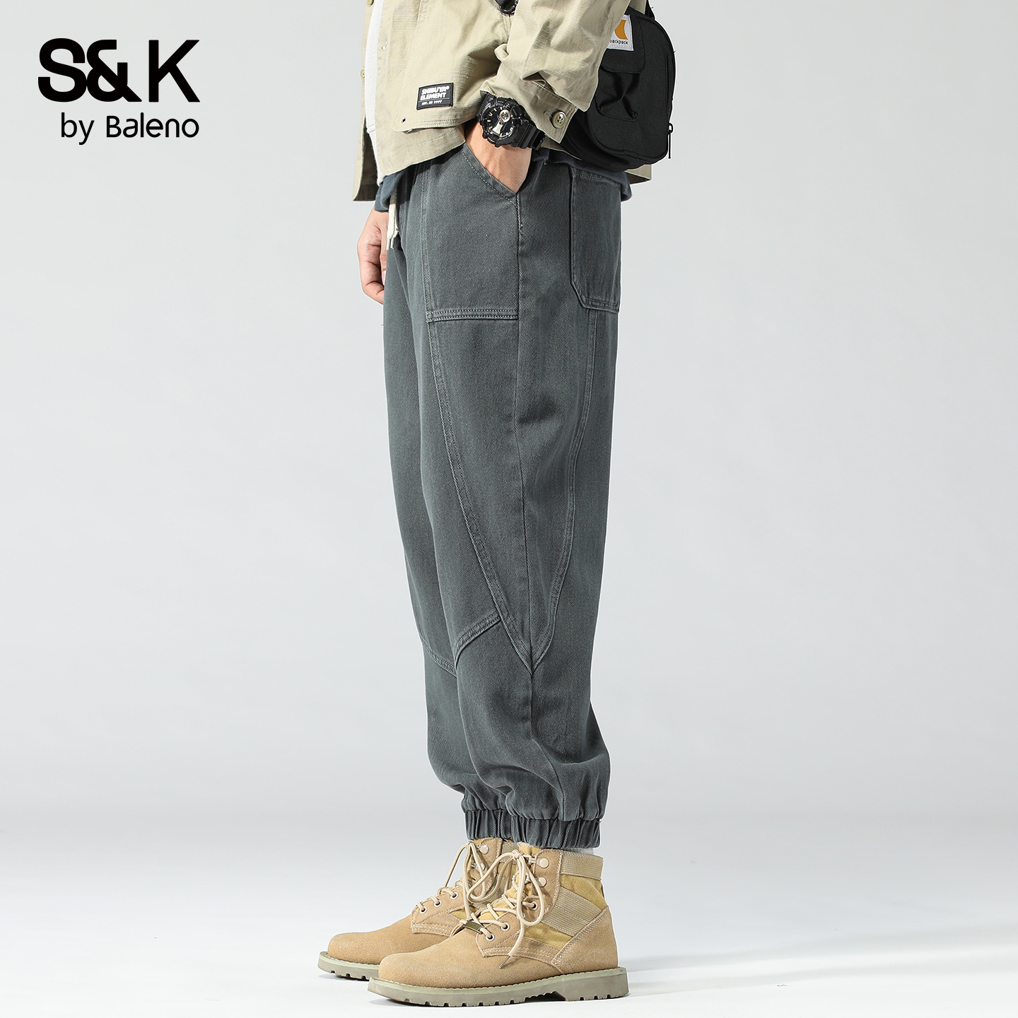 班尼路SK美式工装裤男潮牌宽松2025秋季新款休闲百搭九分束脚裤MS