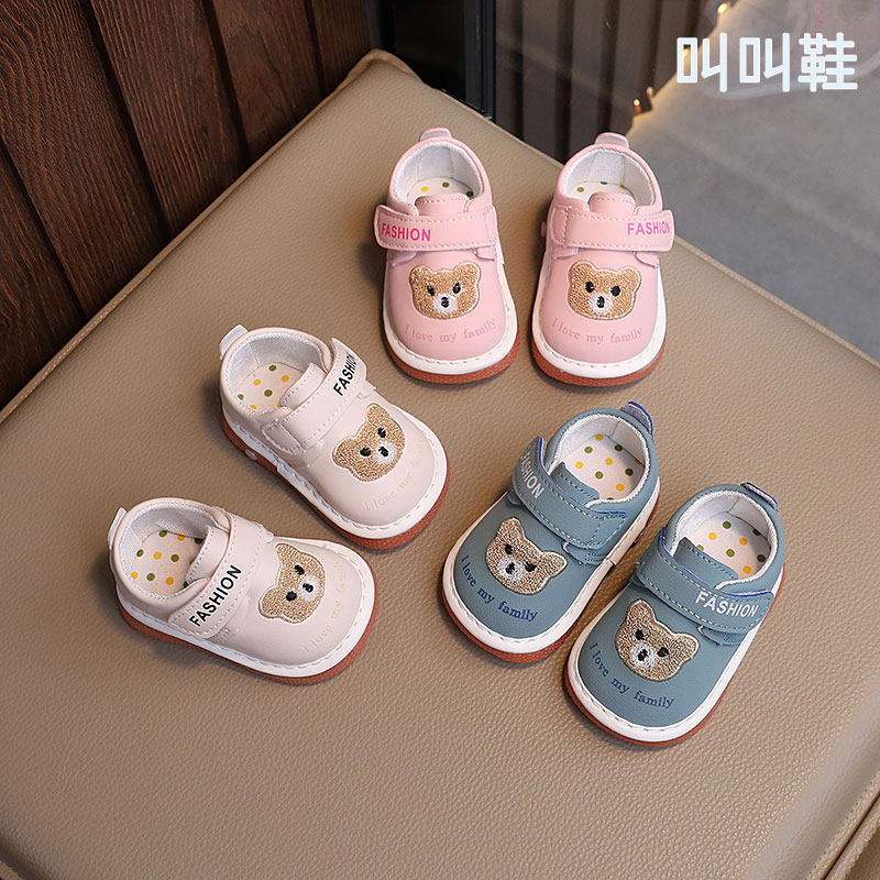 叫叫鞋春秋男宝宝鞋子女童童鞋软底婴儿学步鞋防滑皮鞋0-1岁2带响