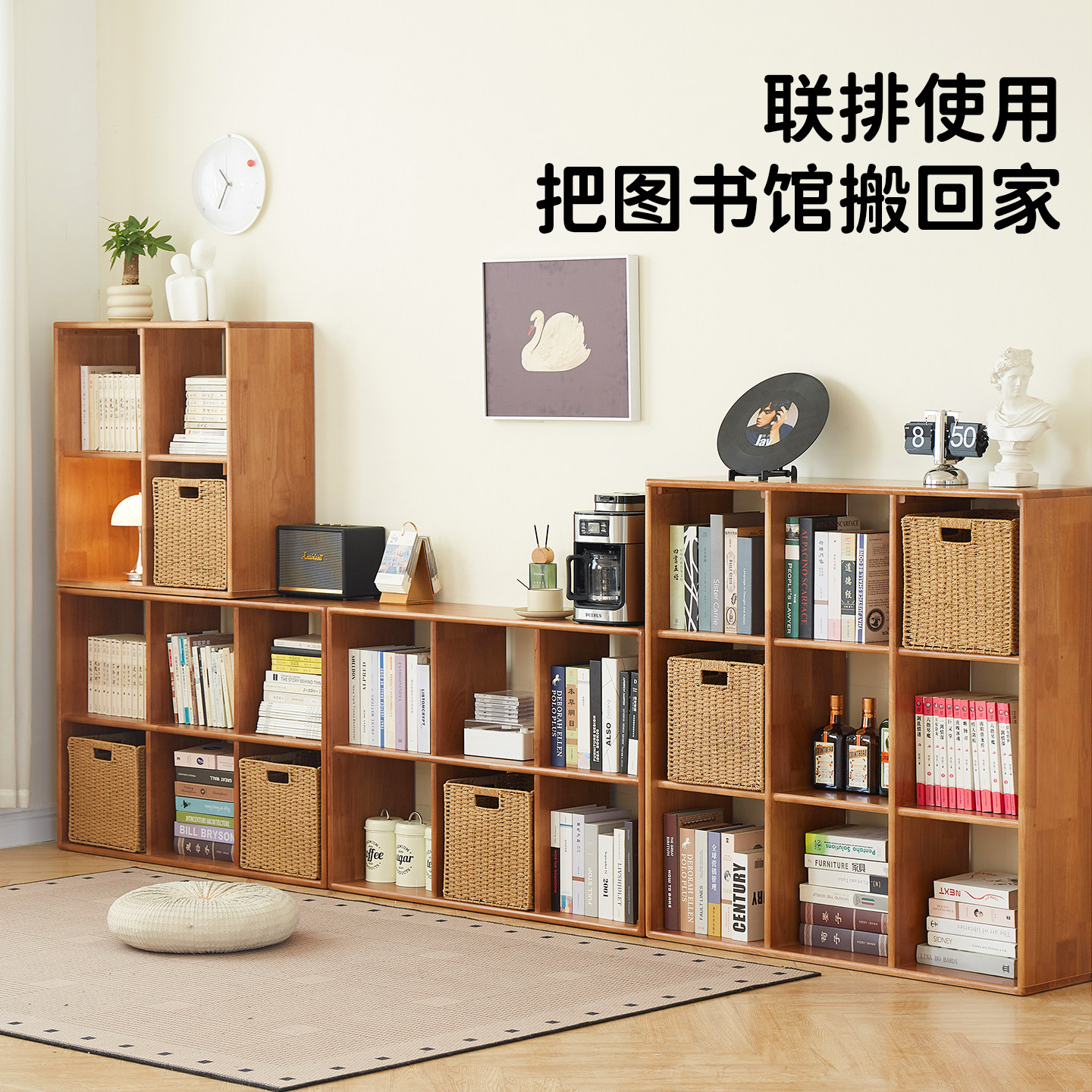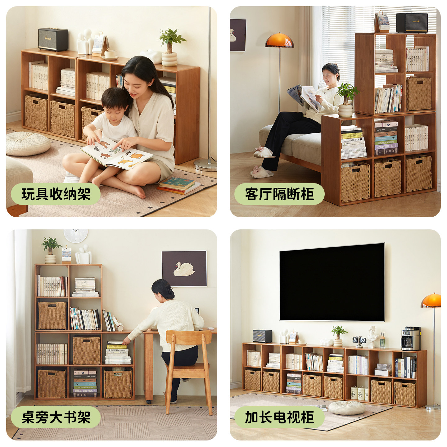 全实木书架落地置物架书柜储物柜一体绘本架组合格子柜客厅电视柜