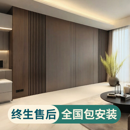 2026新款意式ENF环保沙发电视背景墙黑胡桃实木格栅木饰面包安装