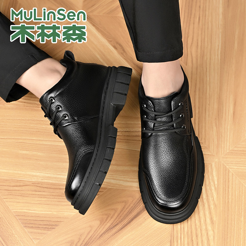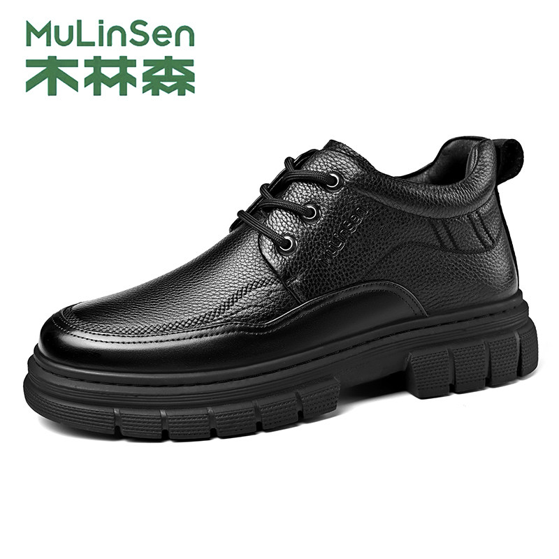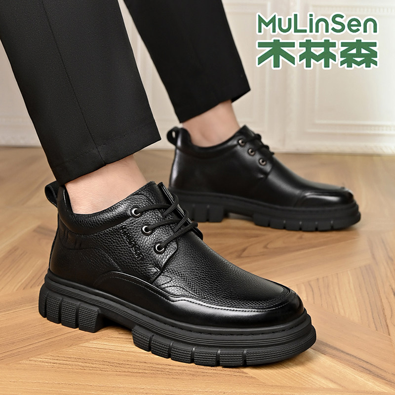 木林森皮鞋男款冬季加绒保暖休闲运动商务中高帮马丁工装棉鞋短靴