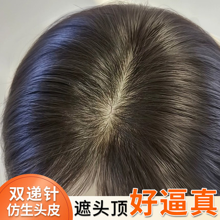 假发女片头顶无痕遮白发可扎发蓬松颅顶自然前额全真发递针补发片