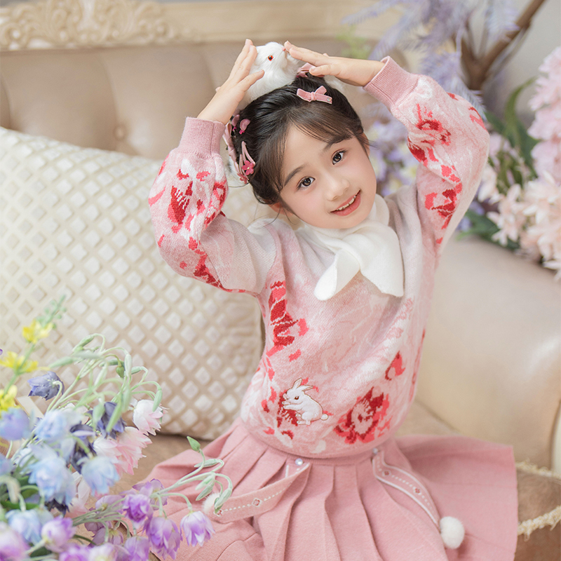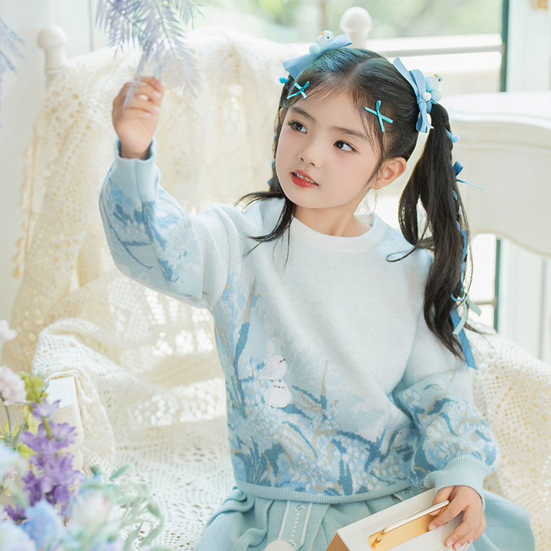 观山见童装国风儿童外穿毛衣女童2025秋冬套装日常百搭保暖针织衫