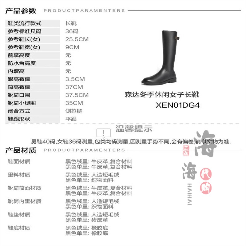 SENDA/森达 2024冬季百搭纯色休闲女鞋高靴国内正品代购XEN01 DG4