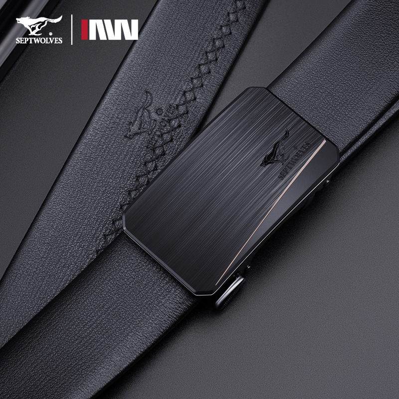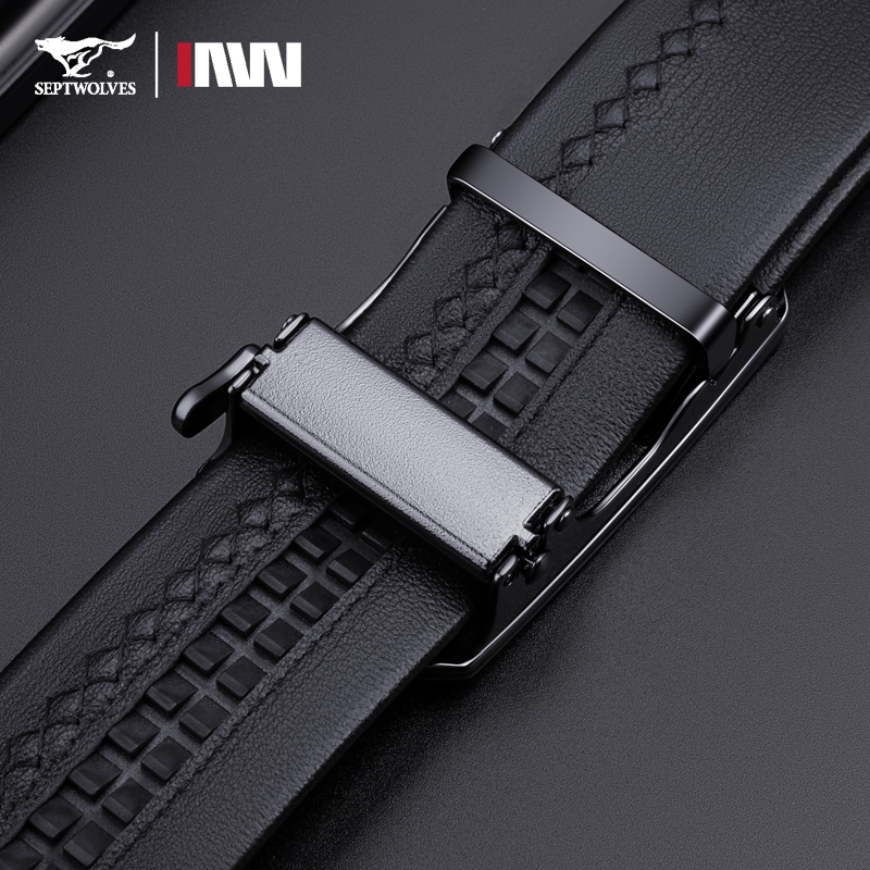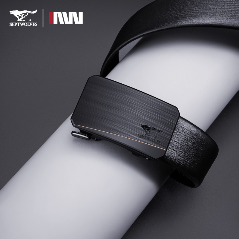 七匹狼皮带男士新款自动扣内穿式扣头真皮腰带生日礼物品牌裤带