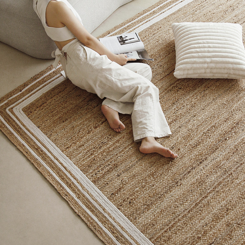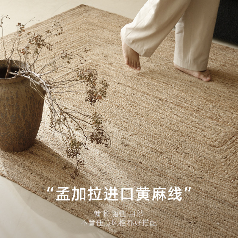 MILA米拉|沐野|侘寂风进口天然黄麻手工编织地毯民宿卧室地垫