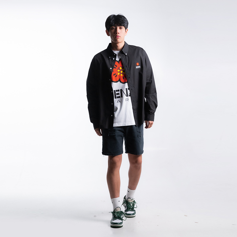 KENZO/高田贤三logo刺绣Boke Flower 男士排扣衬衫男秋冬推选
