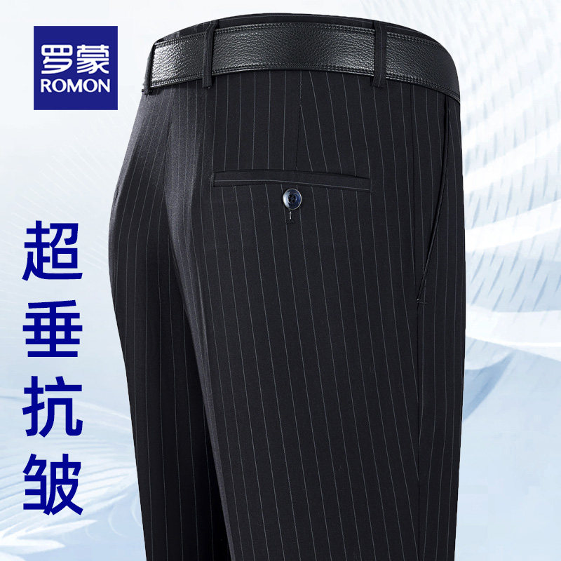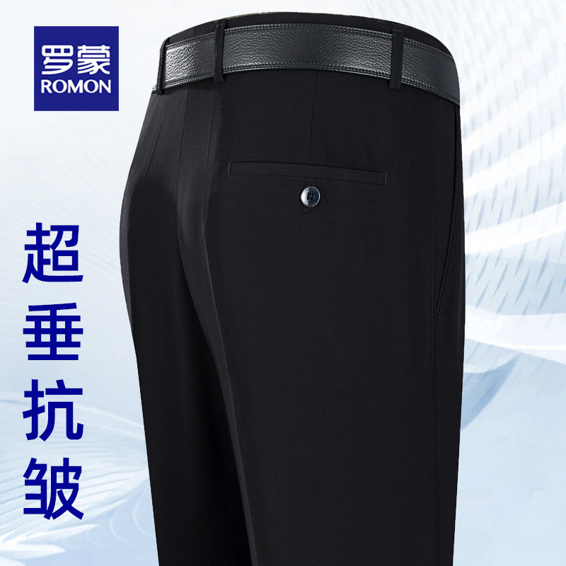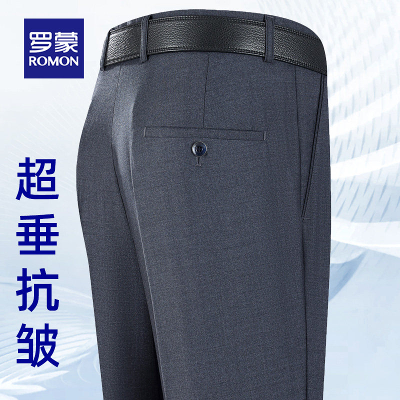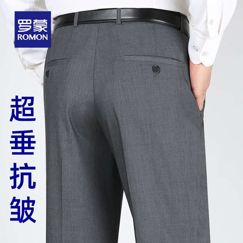 罗蒙中老年男裤夏季冰丝宽松直筒商务西裤爸爸装大码免烫正装西裤