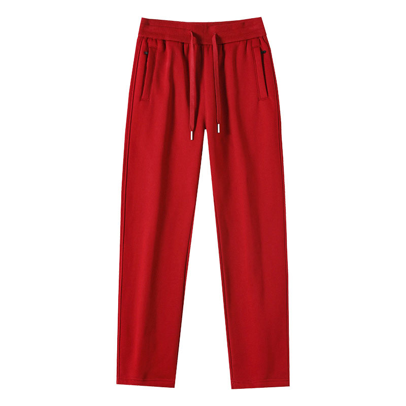 酒红色加绒运动裤女秋冬纯棉大码直筒裤宽松高腰显瘦休闲加厚卫裤