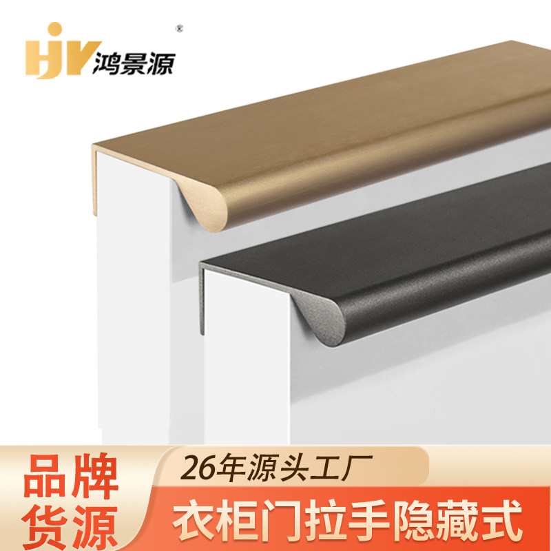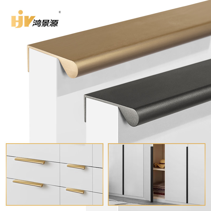 黑色侧装拉手现代简约衣柜门暗装长拉手柜子抽屉隐形封边侧装把手