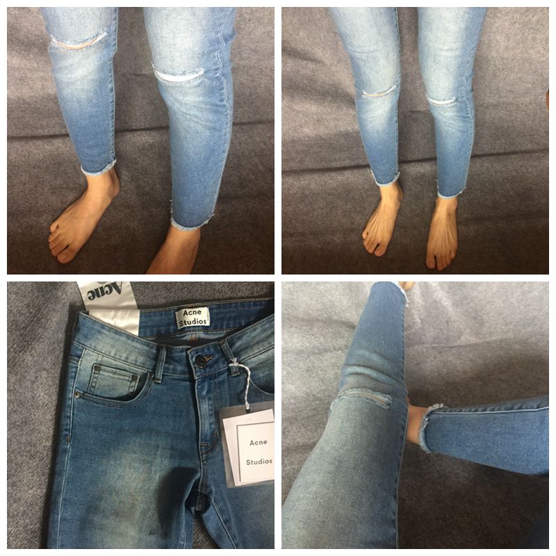 好品质清爽毛边膝盖破洞九分弹性牛仔小脚裤舒适女新款春秋大码