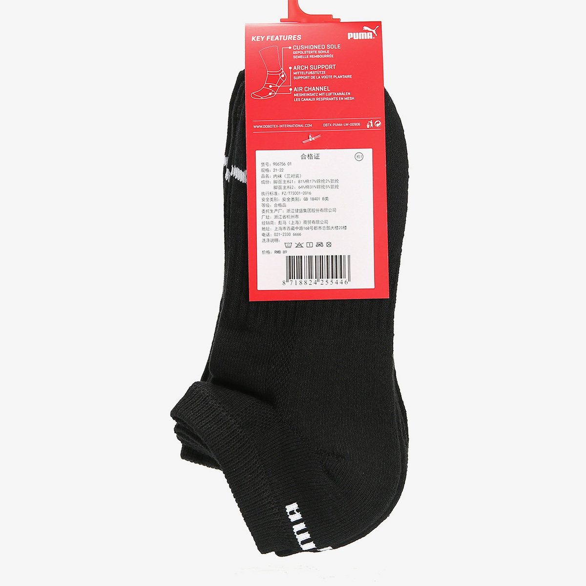 PUMA/彪马正品男女袜新款 三双装短筒休闲透气运动袜 906756