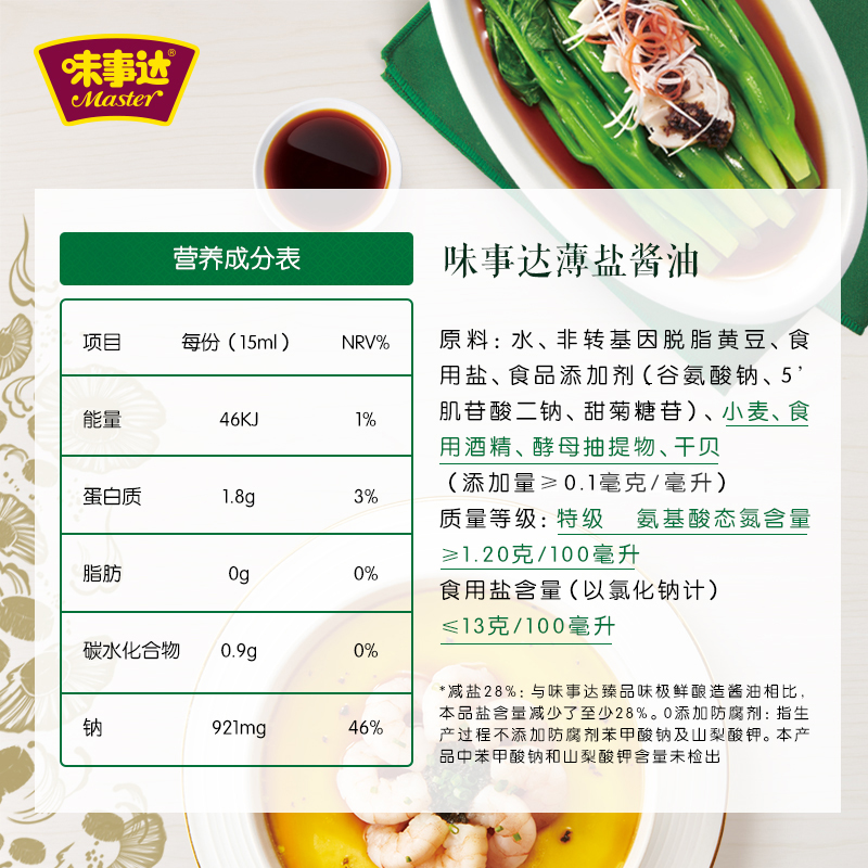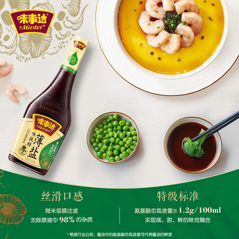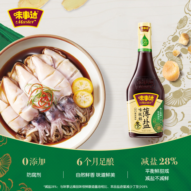 味事达薄盐酱油760ml*2 味极鲜特级酿造海鲜酱油家用炒菜凉拌酱汁