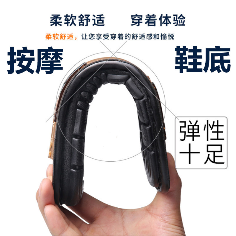 夏季真皮男士爸爸加肥加大沙滩鞋
