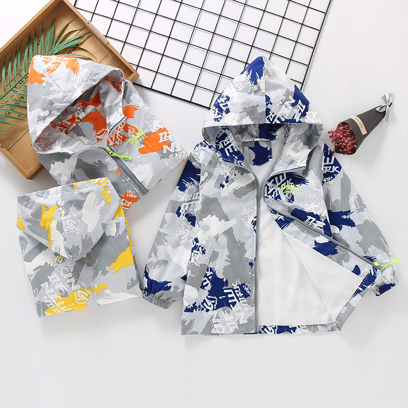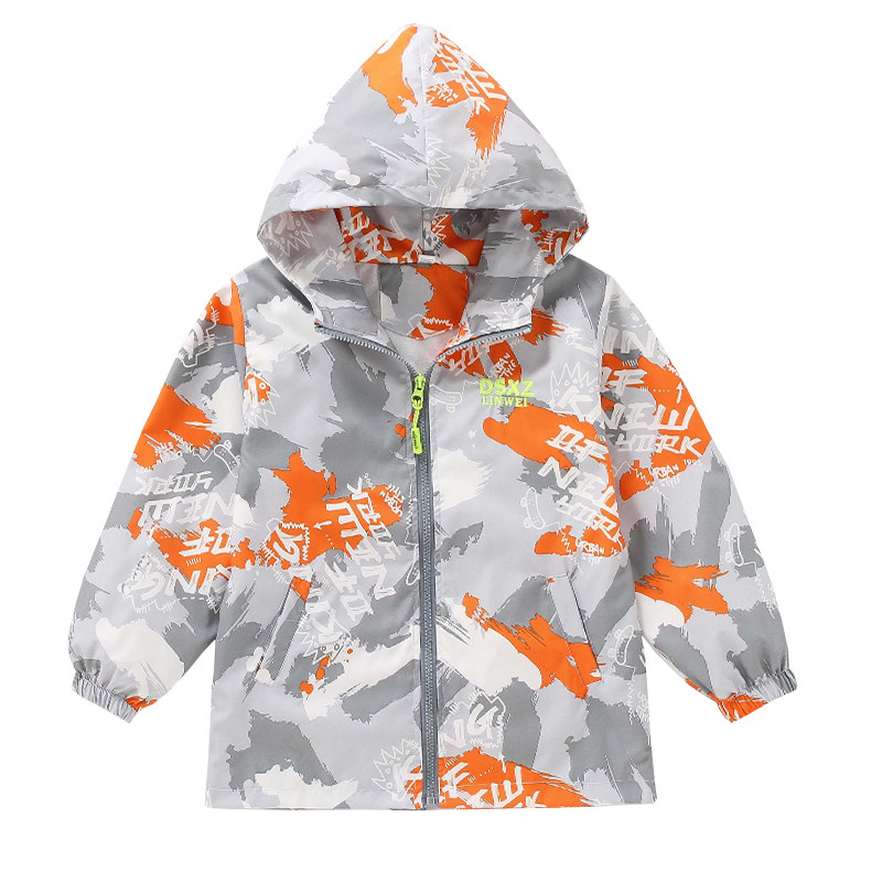男童春装帅气字母外套春秋冲锋衣2025春季新款洋气中大童夹克风衣