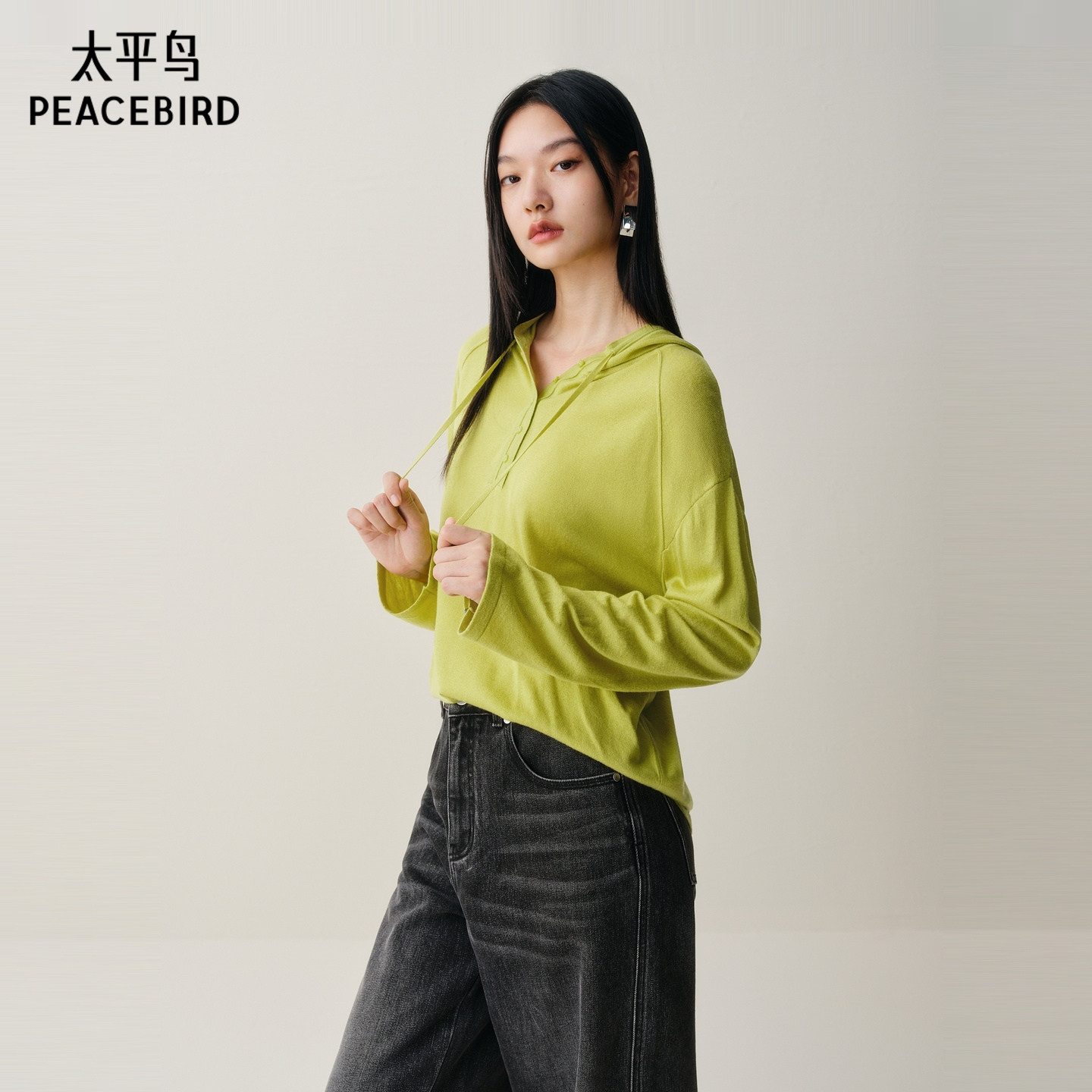 【商场同款】太平鸟25冬季新款羊毛混纺连帽宽松针织衫A3EEF4270