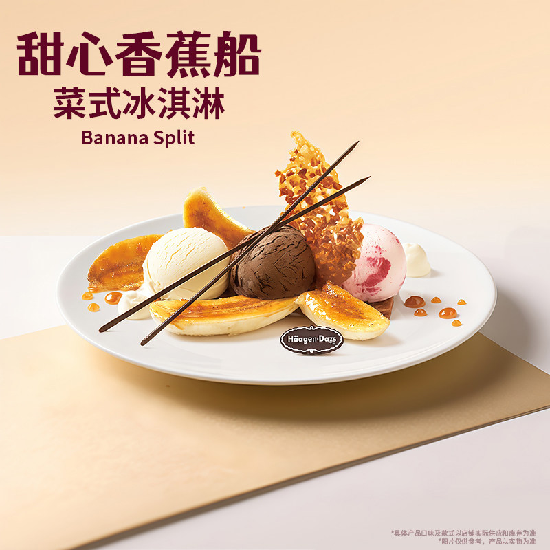 【到店兑换】哈根达斯冰淇淋甜心香蕉船香草味创意菜式单次兑换券