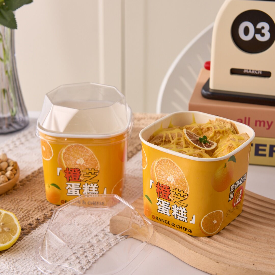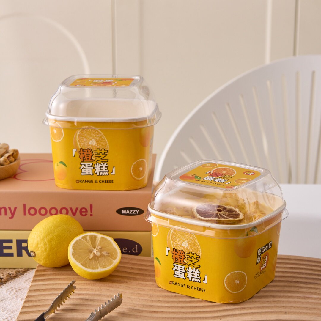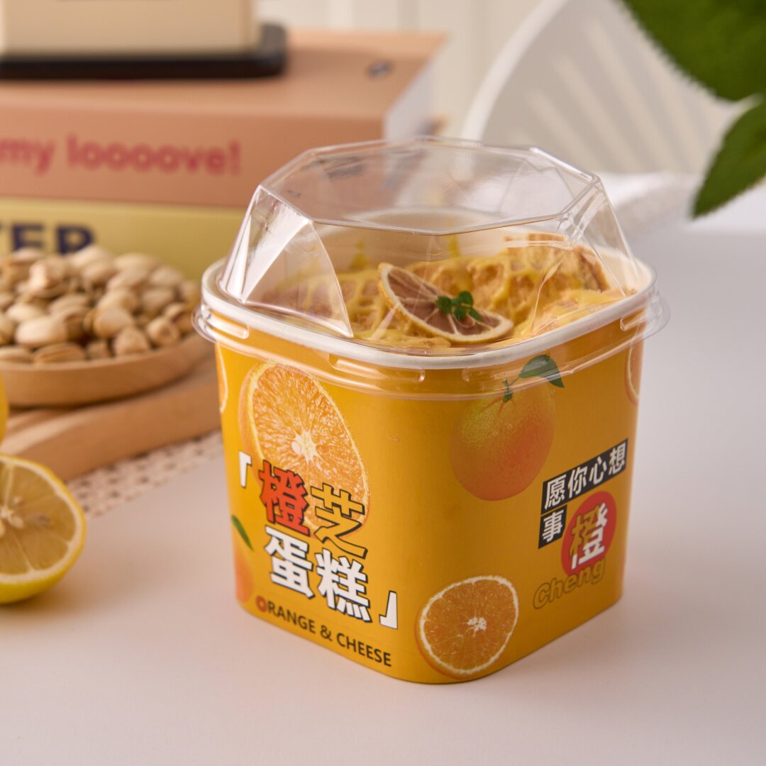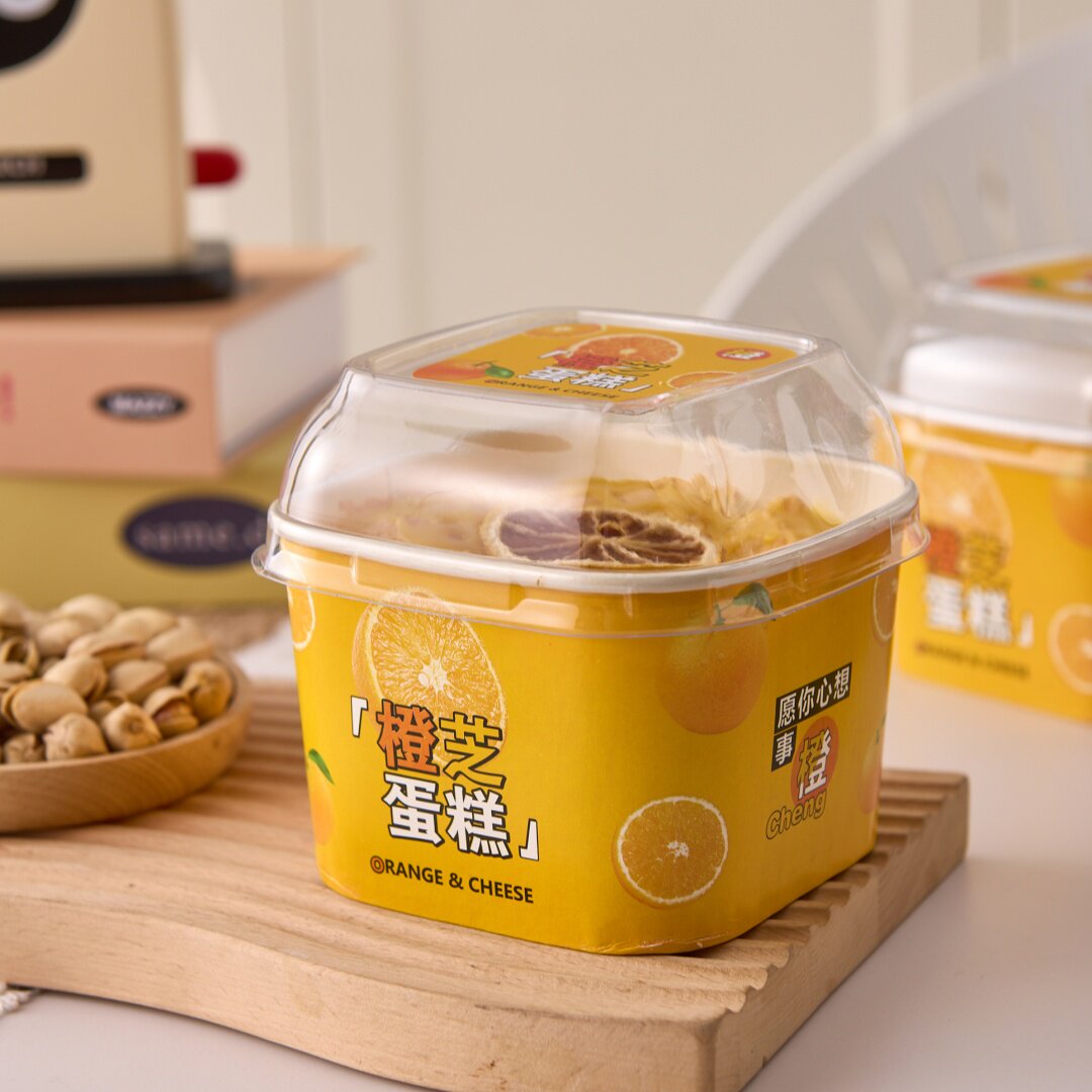 网红橙芝蛋糕包装盒耐高温纸碗