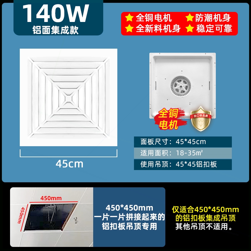 家用集成吊顶换气扇450x450强力静音排气扇45x45卫生间厕所厨房