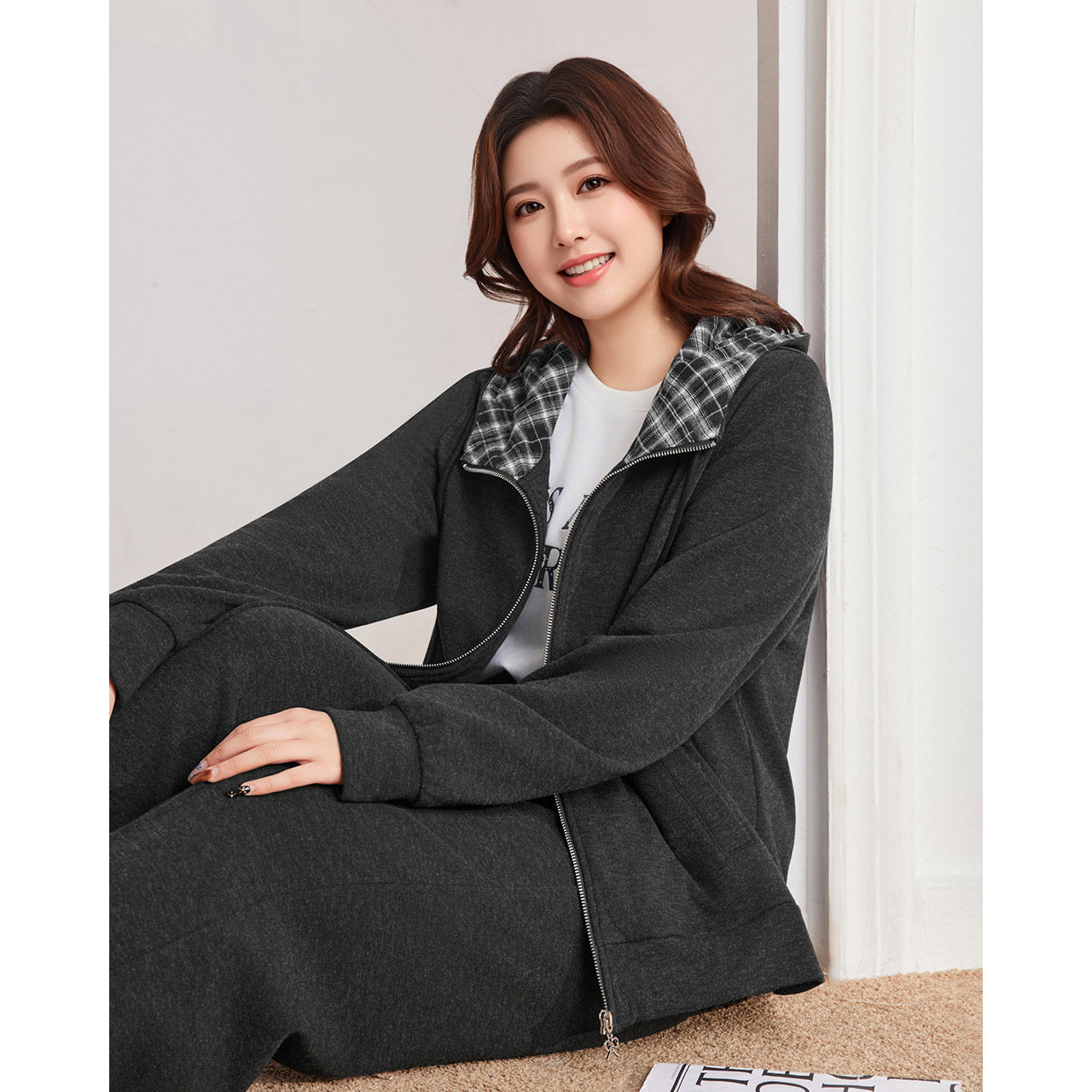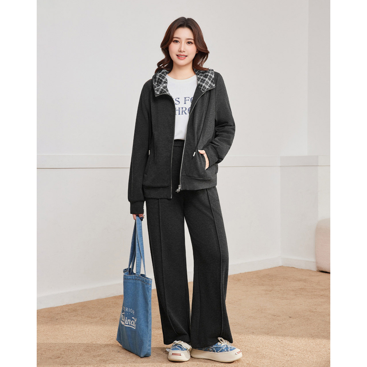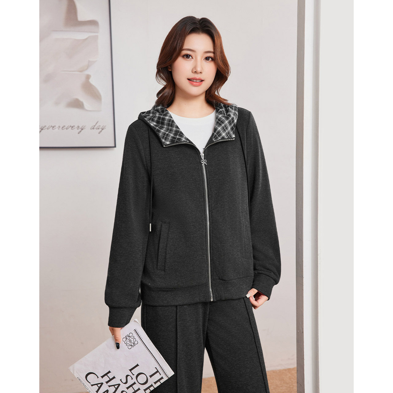 IEF/爱依服【大码女装】套装2025秋季新款连帽外套休闲长裤两件套