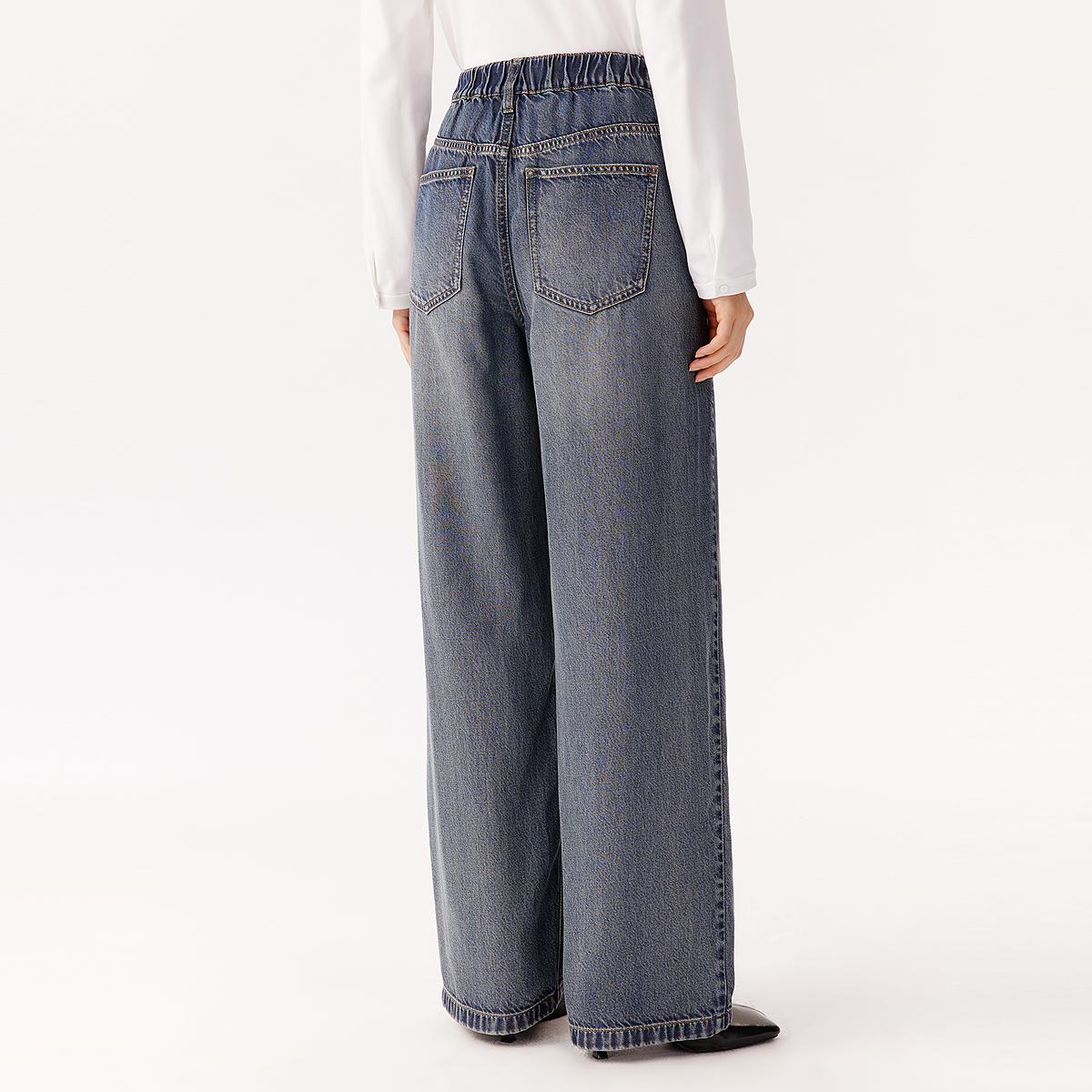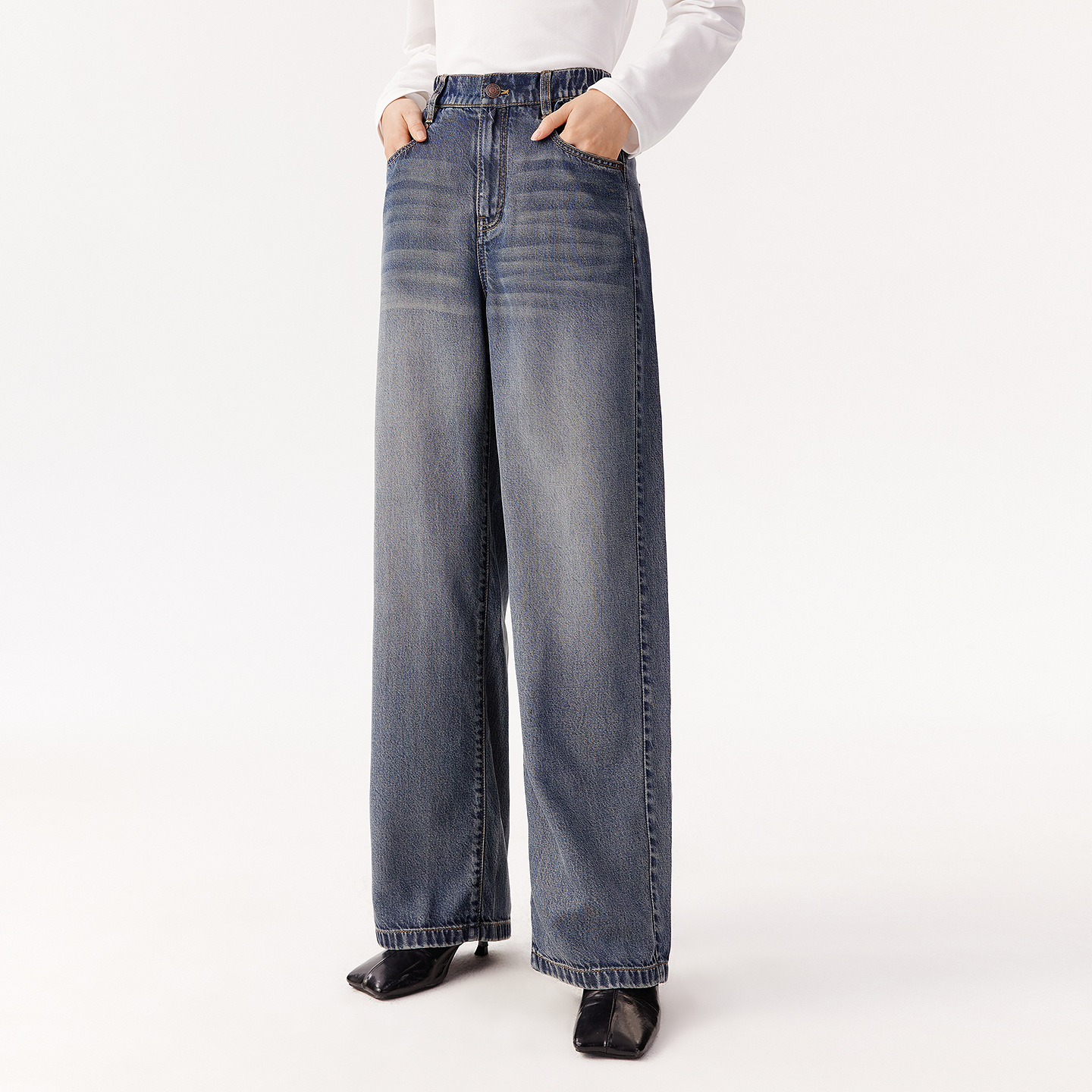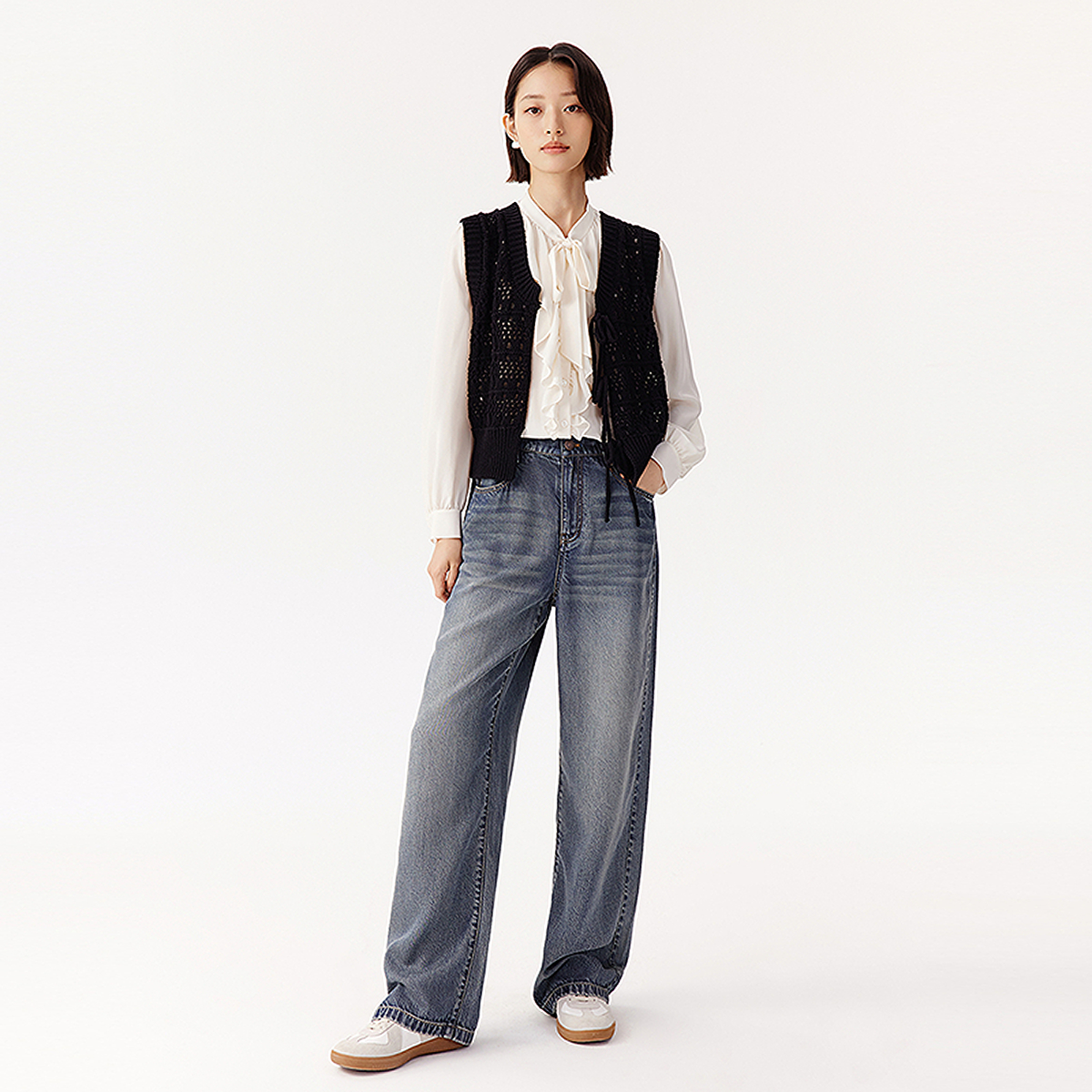 VGRASS25早秋新款自在“呼吸感”莱赛尔轻牛仔清爽百搭阔腿裤