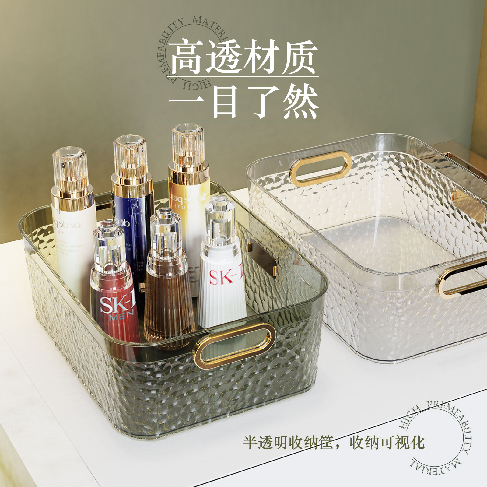 化妆品收纳盒亚克力桌面梳妆台口红护肤品杂物宿舍整理透明收纳筐
