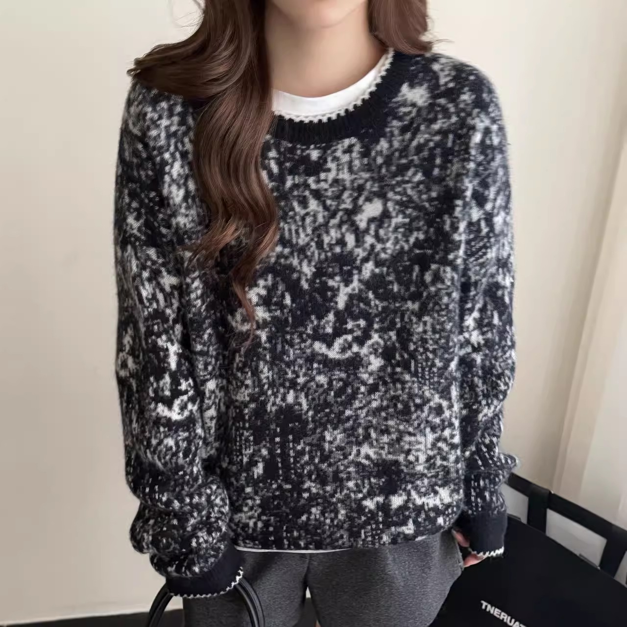 圆领提花中国风水墨设计感羊绒针织衫秋冬宽松时尚慵懒风百搭上衣