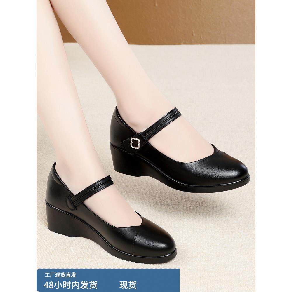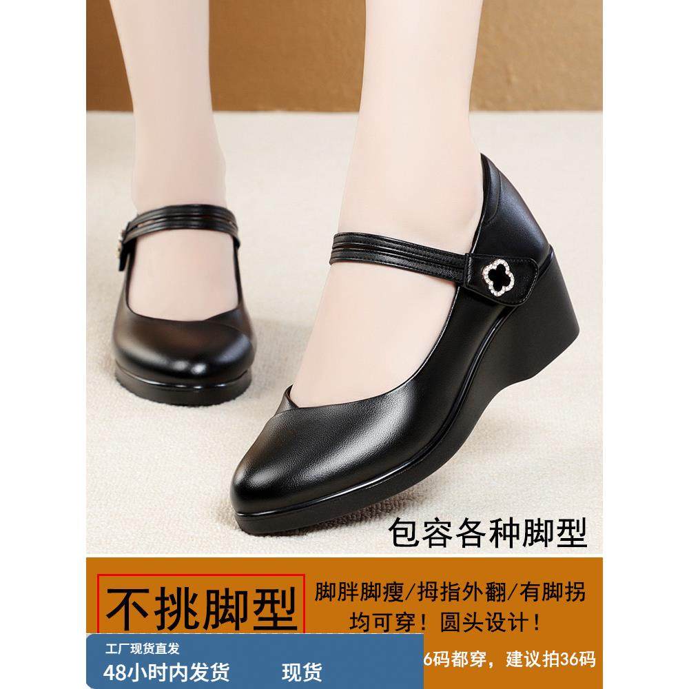 坡跟妈妈鞋真皮中跟女士皮鞋单鞋春秋款中老年女鞋2025年新款平底