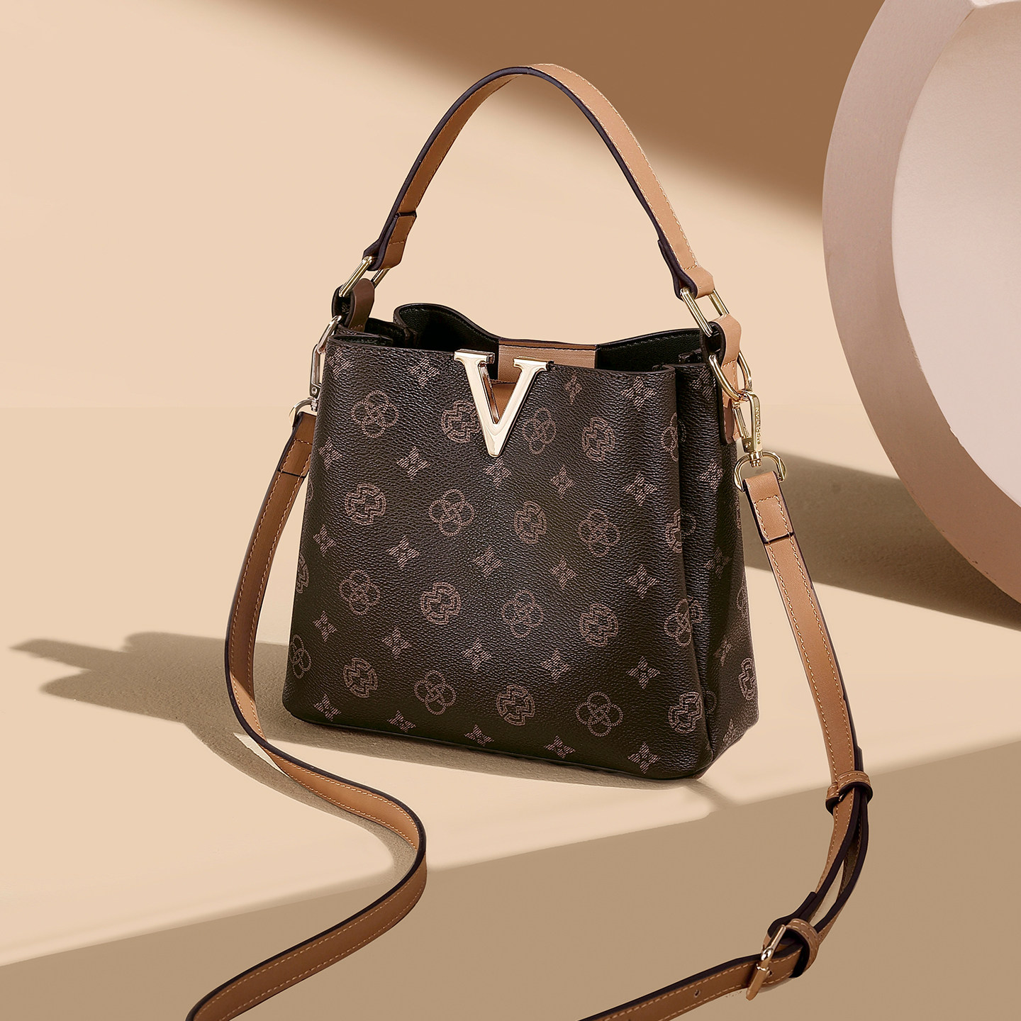 稻草人复古印花包包2025新款高级水桶包小众手提斜挎包女士单肩包