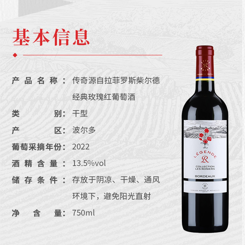 拉菲传奇玫瑰AOC红酒罗斯柴尔德法国原瓶进口干红葡萄酒整箱6支