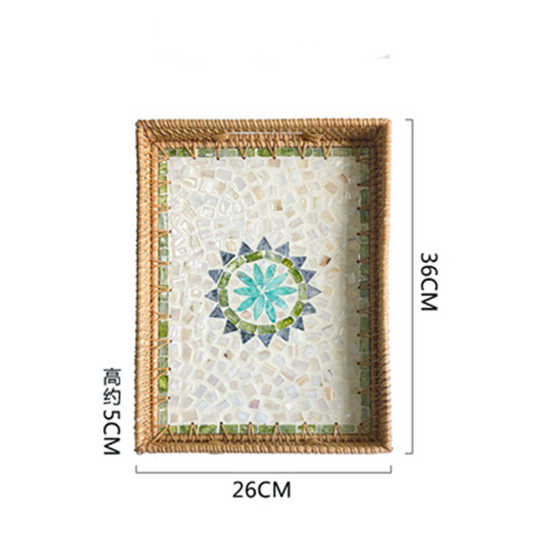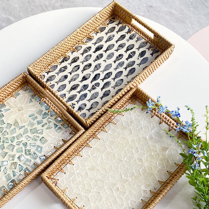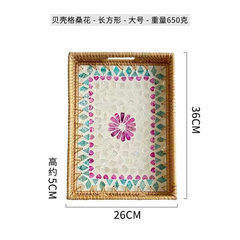越南藤编贝壳托盘长方形水果盘藤篮编织早餐篮日式面包筐点心篮子