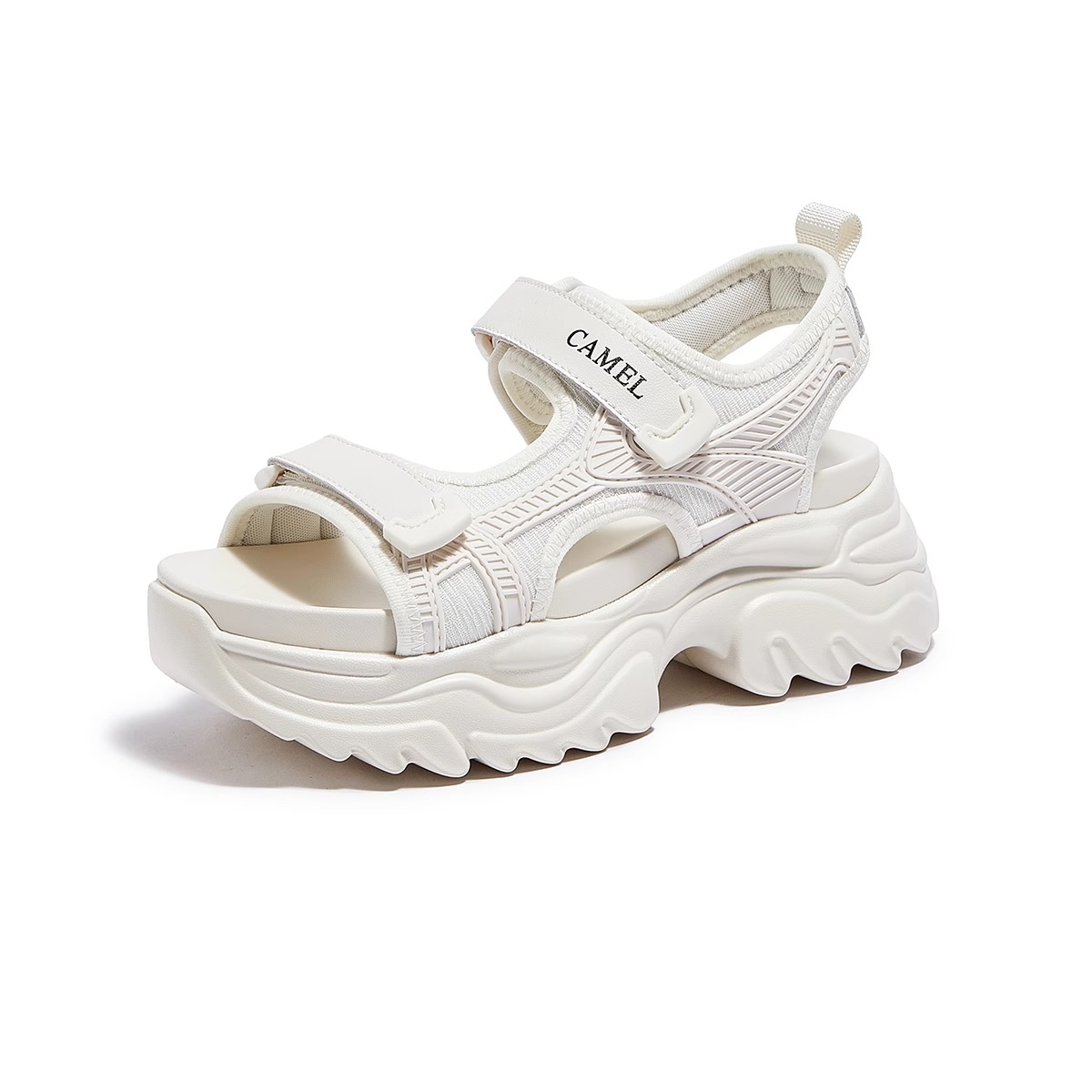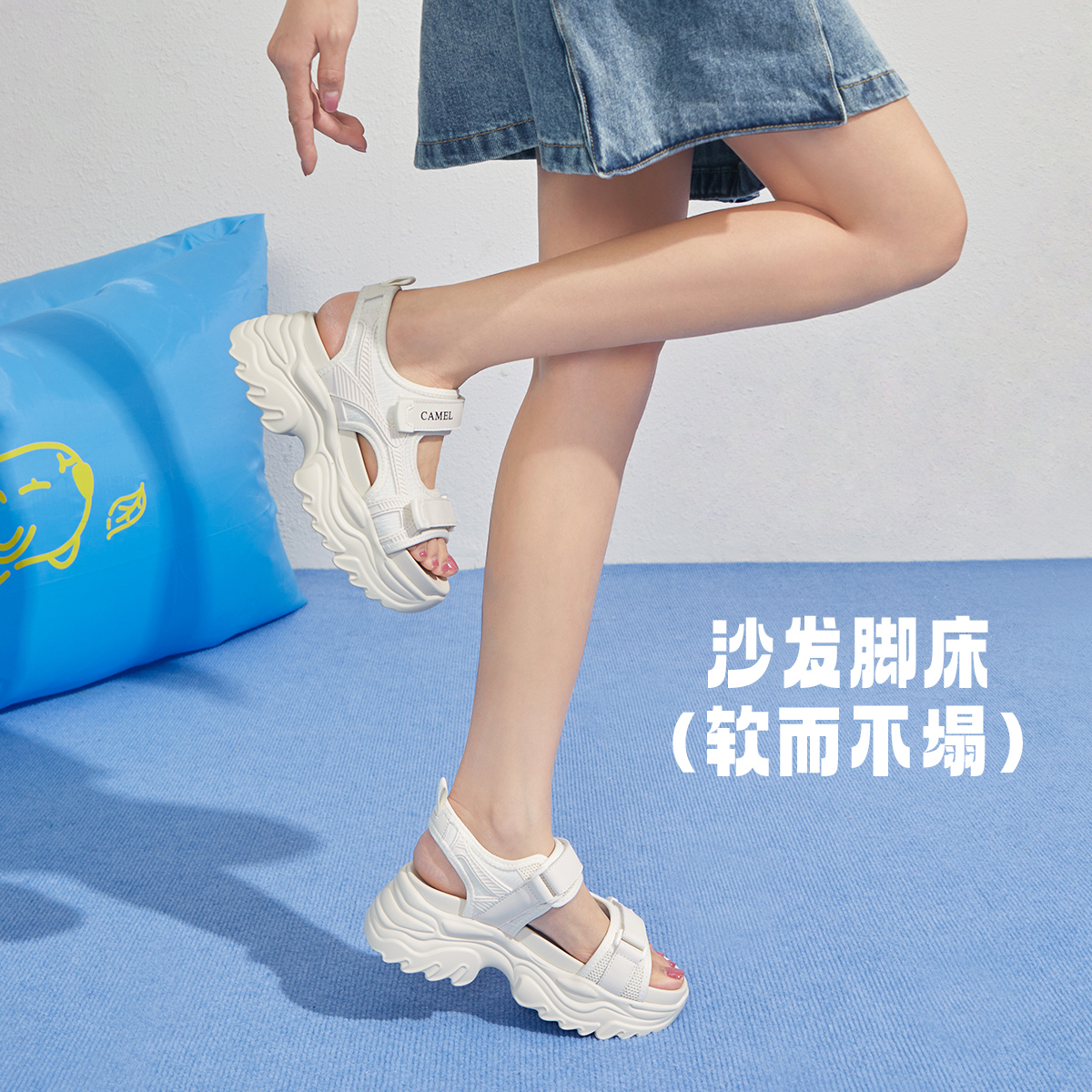 骆驼女鞋2024夏季新款运动老爹凉鞋女款厚底增高休闲魔术贴沙滩鞋