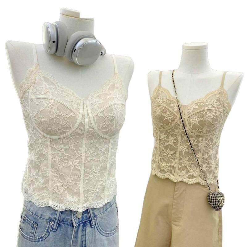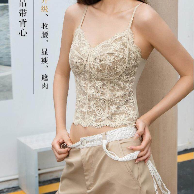 秋冬新款蕾丝花边吊带背心女一体式带胸垫上衣外穿内搭打底衫