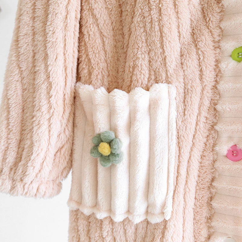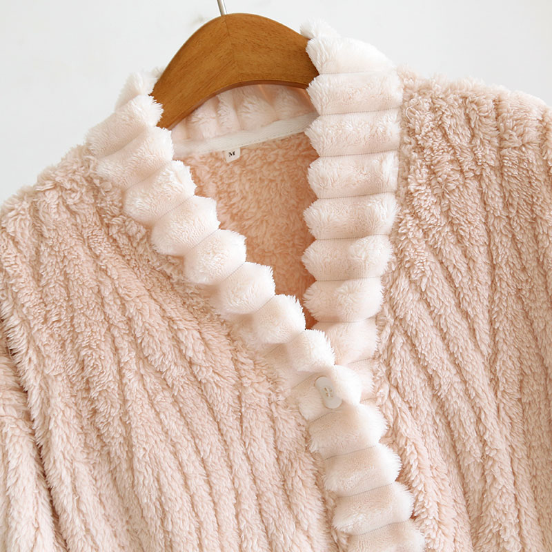 水波纹法兰绒睡袍女士睡衣浴袍秋冬款长款加厚加绒珊瑚绒冬天家居