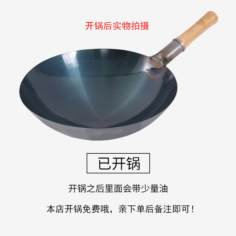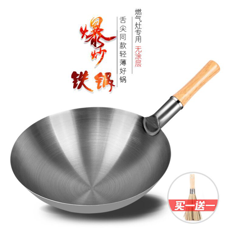 铁锅炒菜锅轻便女士用不粘无涂层家用老式铁锅超轻簿燃气灶适用